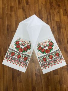 Ми пропонуємо лише якісний товар Ритуальні товари Рушник Габардин 200*40 см Орнамент 7 Троянда вінок з Люрексом по вигідній ціні 110 грн для ритуальних церемоній з доставкою по всій Україні