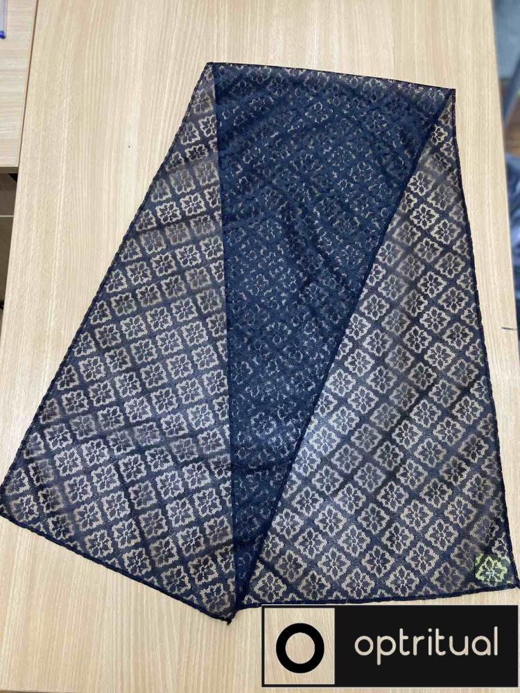 Шарф для похорону зазвичай має стриманий і елегантний вигляд, відповідний для траурних церемоній.Найчастіше використовуються темні кольори, такі як чорний, темно-синій або сірий. В деяких культурах можуть використовуватися білі або інші світлі кольори як символ чистоти та спокою. Найчастіше використовуються темні кольори, такі як чорний, темно-синій або сірий. В деяких культурах можуть використовуватися білі або інші світлі кольори як символ чистоти та спокою.Шарфи можуть бути виготовлені з різних матеріалів, таких як шовк, вовна, кашемір або поліестер. Важливо, щоб матеріал був м’яким і комфортним.Зазвичай шарфи для похорону не мають яскравих прикрас. Можливі невеликі вишивки або мереживо, але вони повинні бути стриманими. Шарфи можуть бути різних розмірів, але зазвичай вони достатньо великі, щоб їх можна було обгорнути навколо шиї або плечей.Шарфи можуть бути простими або мати легкий візерунок. Важливо, щоб вони відповідали загальному стилю одягу для похорону.