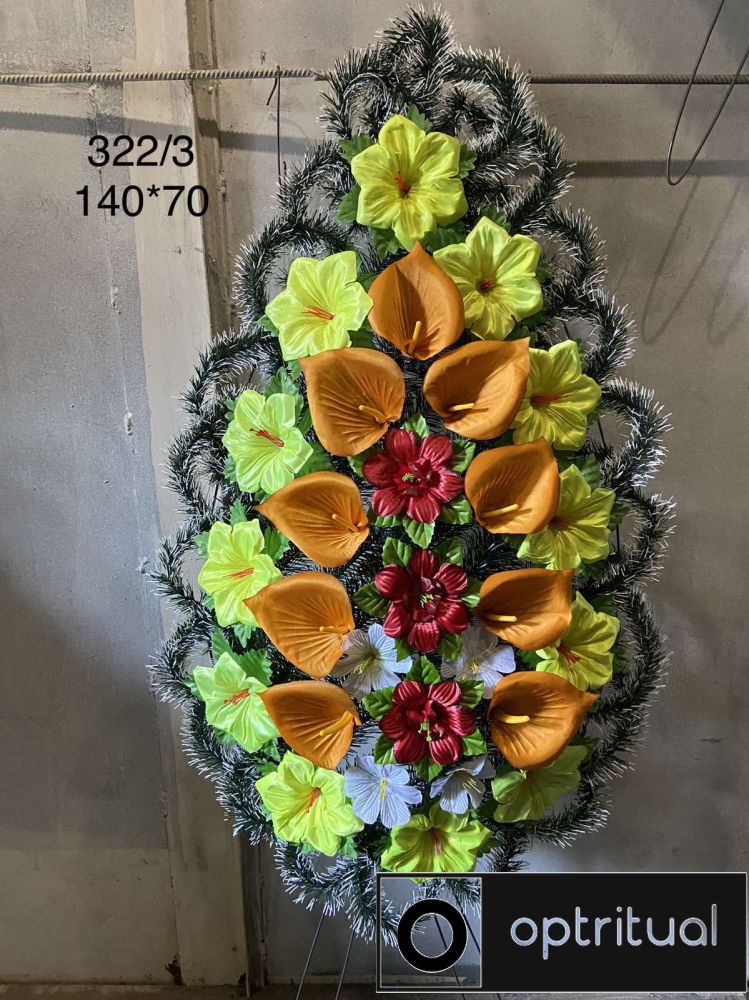 Ми пропонуємо лише якісний товар Ритуальні товари Вінок 322/3 150-60 см по вигідній ціні 370 грн для ритуальних церемоній з доставкою по всій Україні