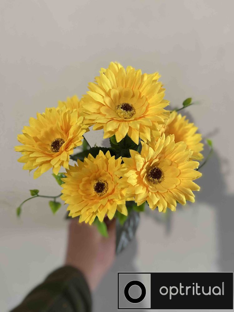 Ми пропонуємо лише якісний товар Штучні квіти Букетик Соняшник 7 голів VV000600420 по вигідній ціні 31 грн для ритуальних церемоній з доставкою по всій Україні